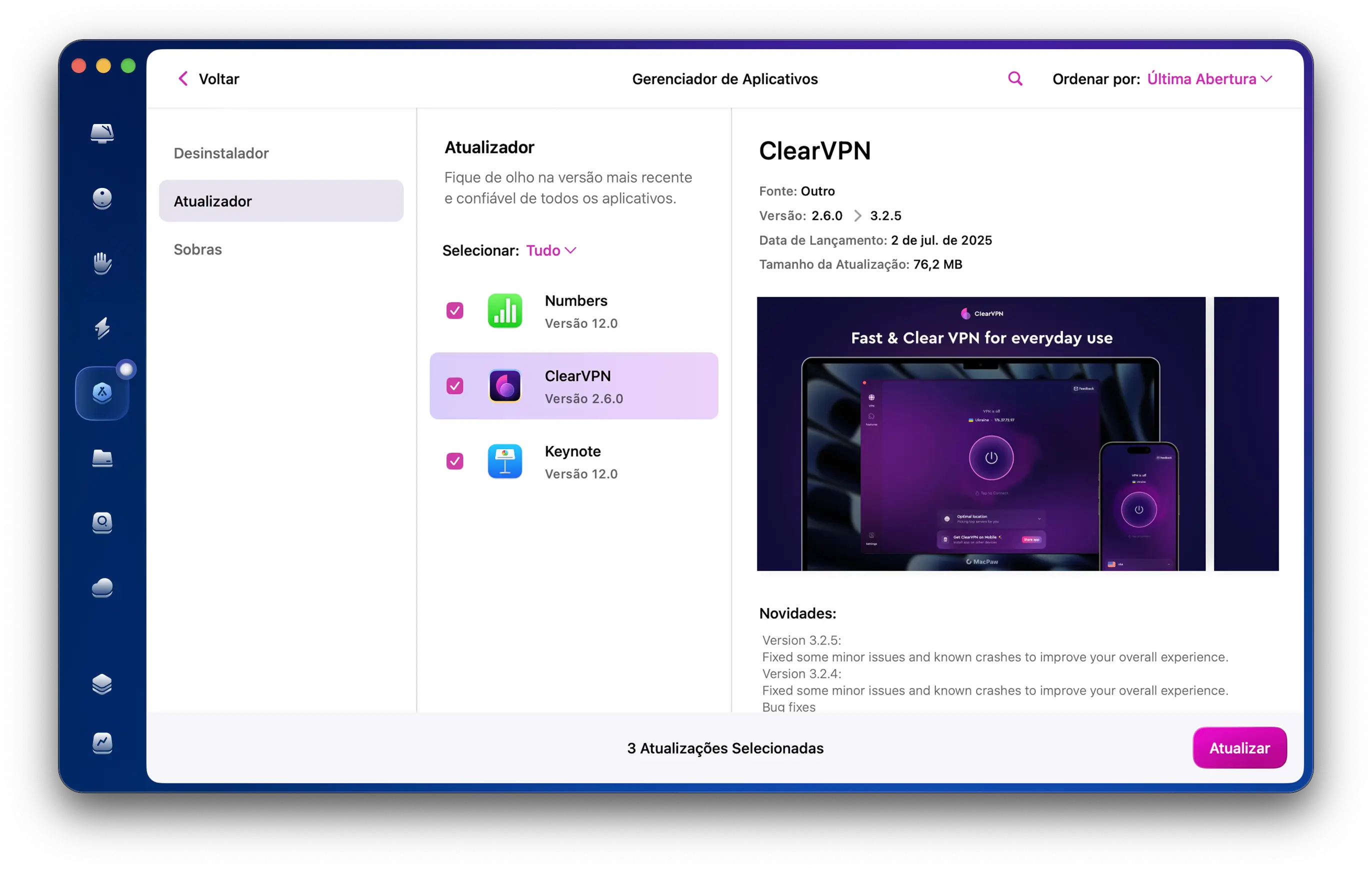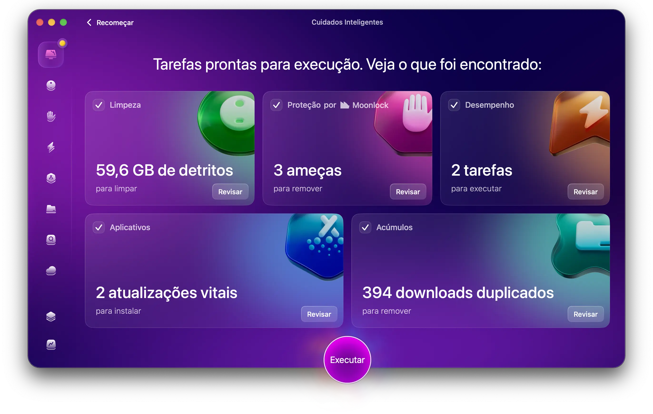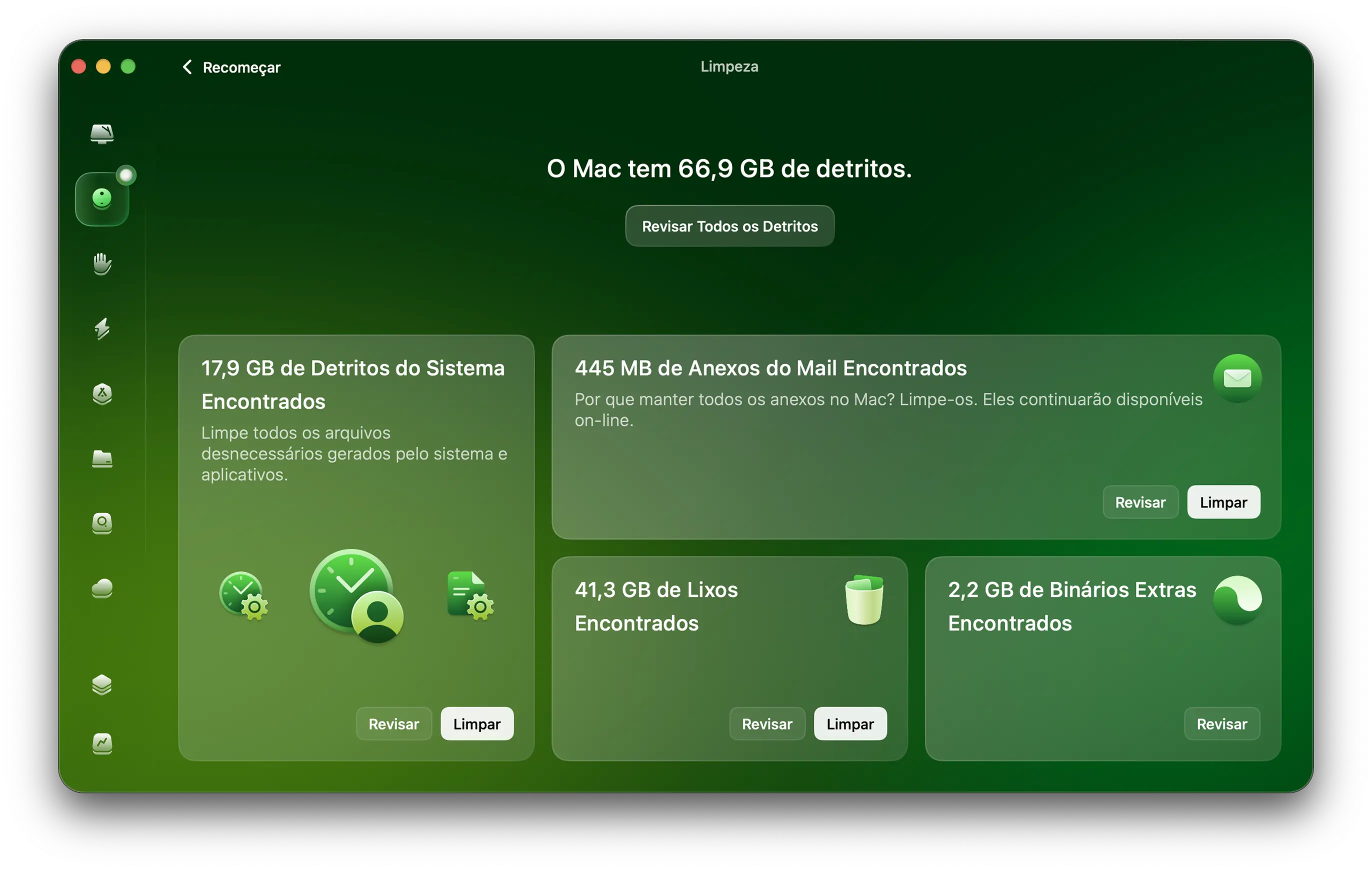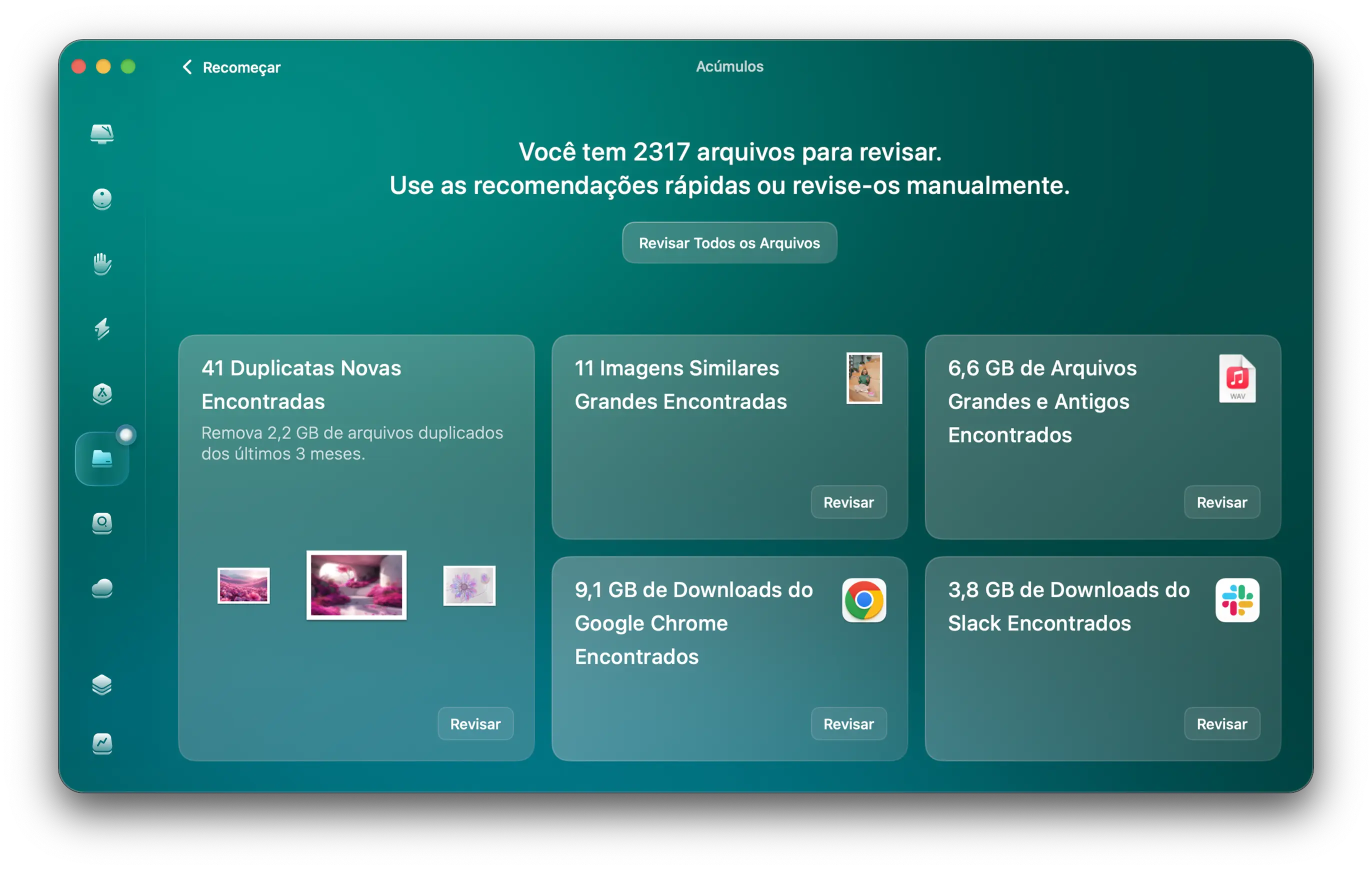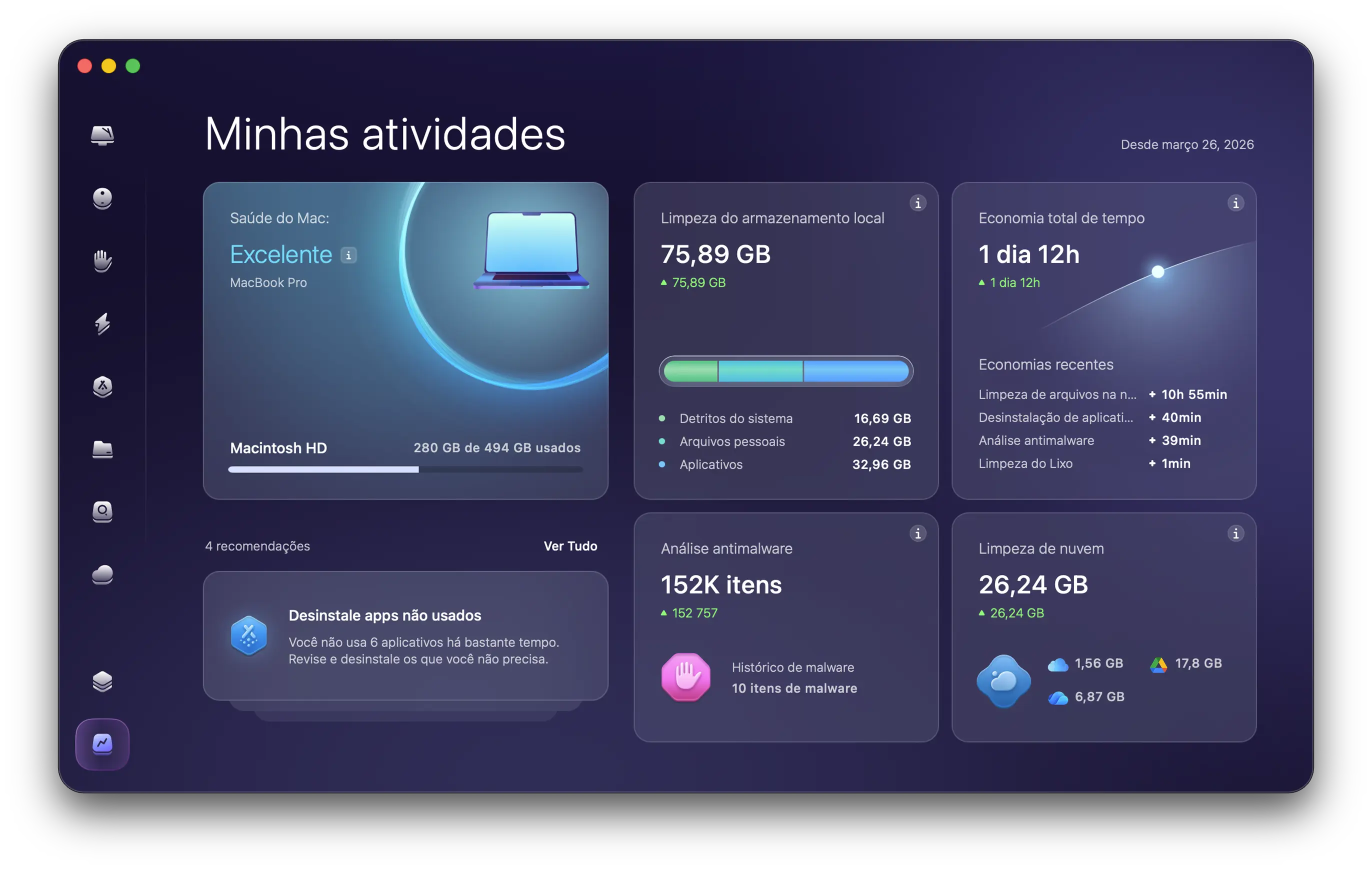 O app limpa o lixo do macOS, da pasta Fotos, dos navegadores e até arquivos grandes ocultos no seu armazenamento em nuvem.