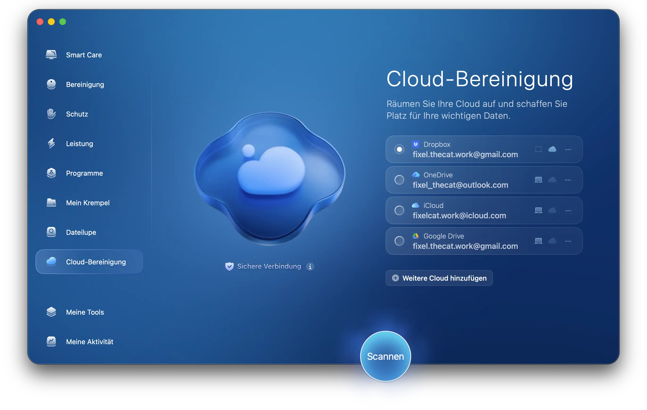 Ihr Cloud-Speicher ist eine Black Box. Sie bezahlen Abonnements, um Dateien zu speichern. Aber wann haben Sie eigentlich zuletzt nachgesehen, was sie eigentlich alles speichern? Starten Sie die Cloud-Bereinigung von CleanMyMac