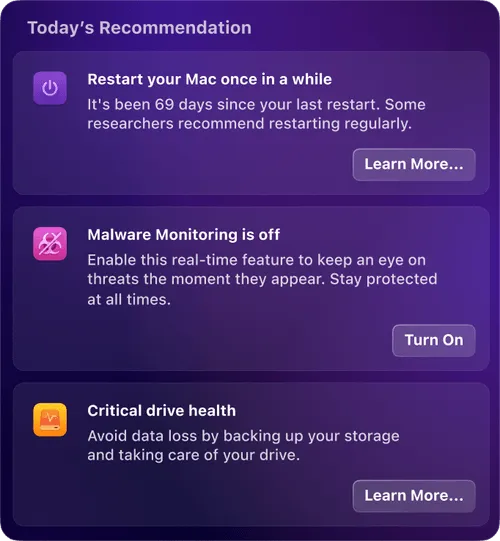 • Use 20+ Mac optimization tools • No limitations • Clean hidden apps and junk • Get personalized Mac health plan